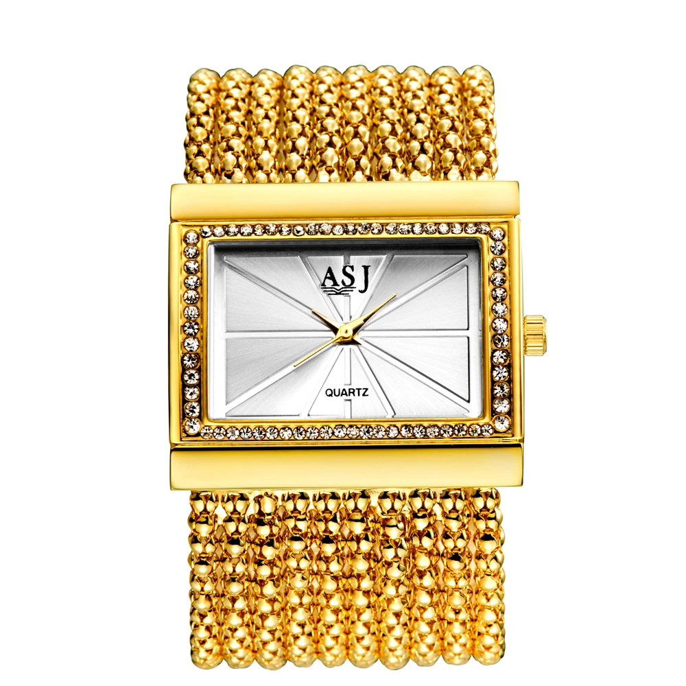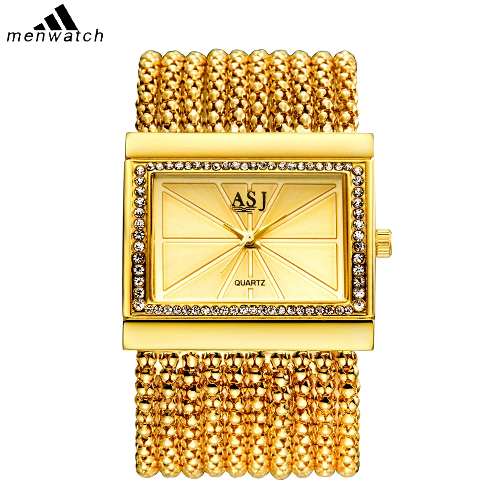 HOT Sale Luxury High Quality Women Gold Stainless Steel Quartz Watch Lady Rectangle Classical Diamond Accura