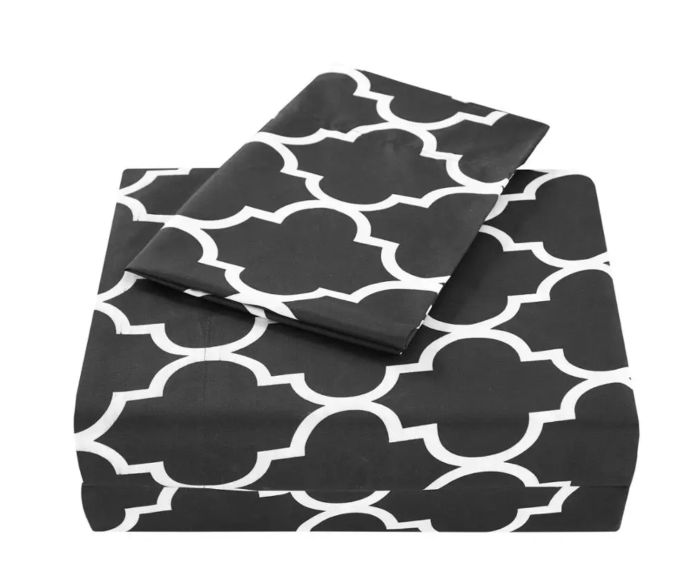 Review Top 4Pcs Classic Printed Bedding Sheet Twin Queen King Size Sheet Set For Bed Sheets Letter Printed Fla