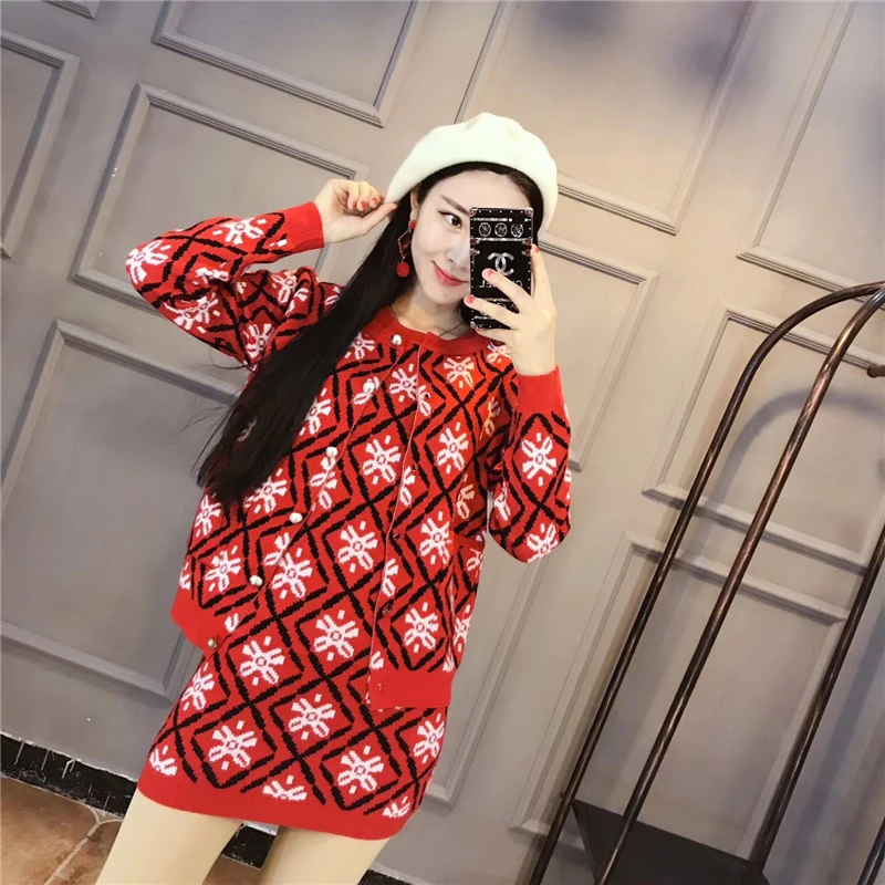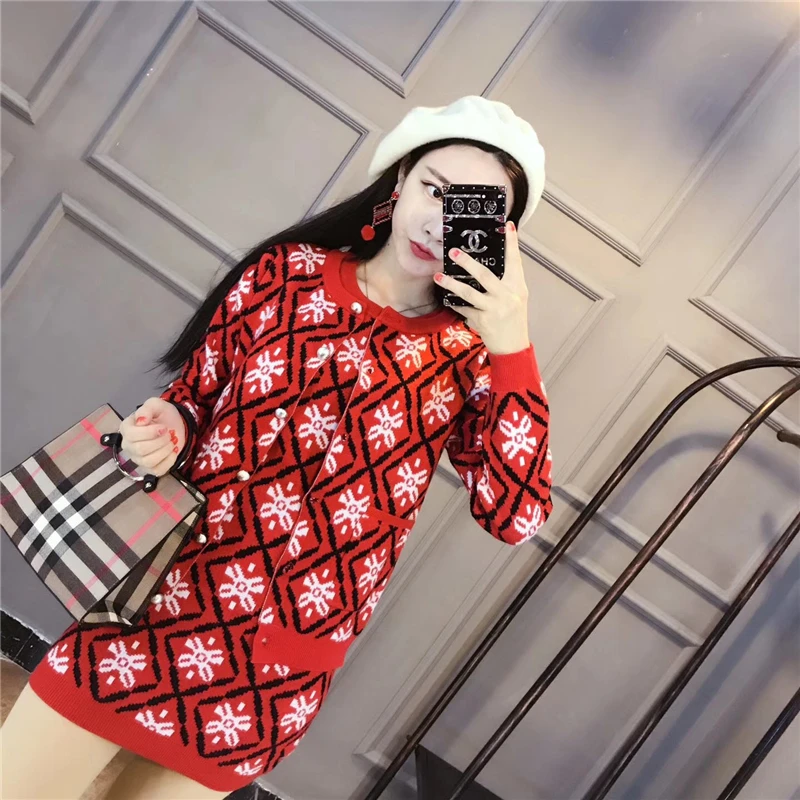 Best knitting dress restore ancient classic decorative pattern round collar wool dress fashion coat sets