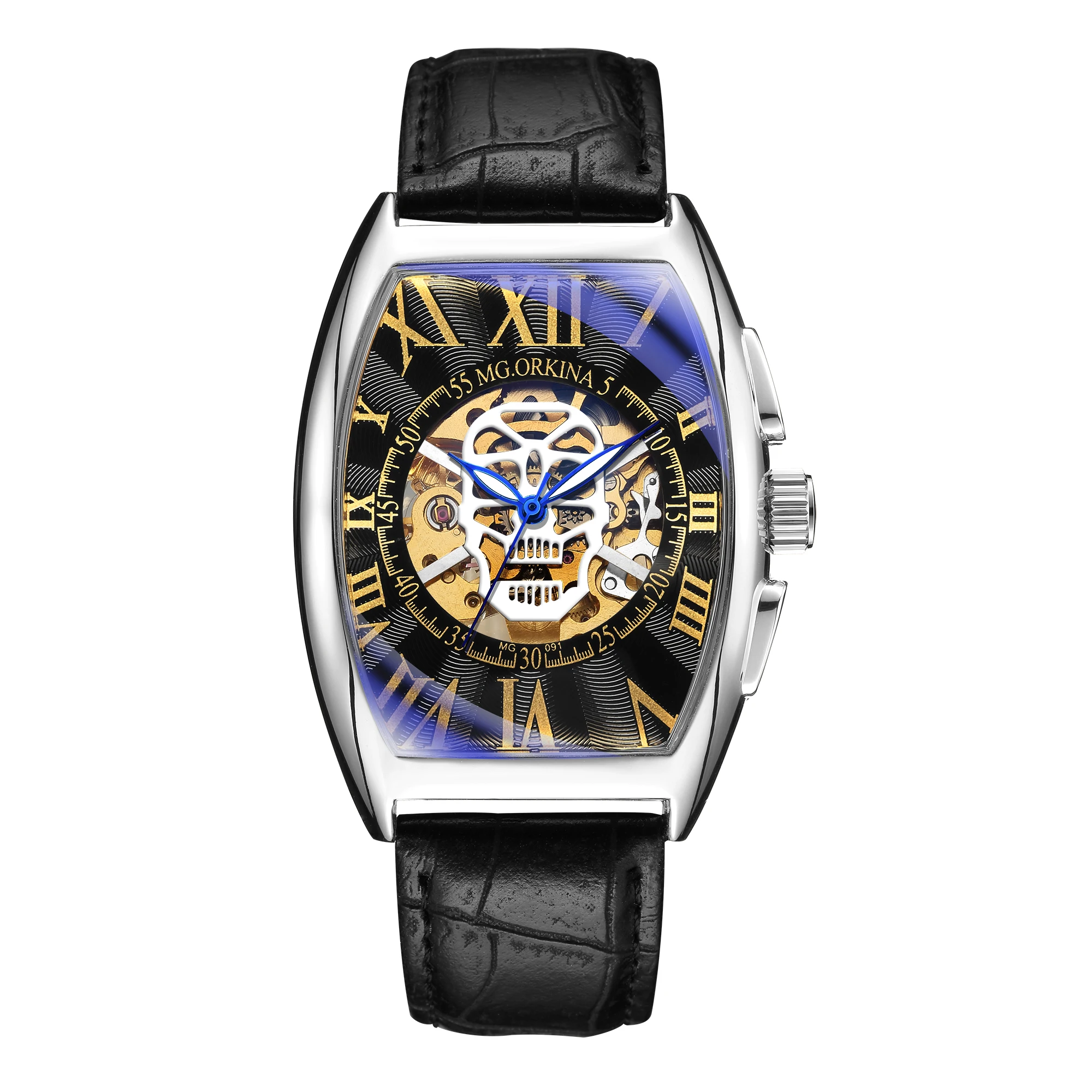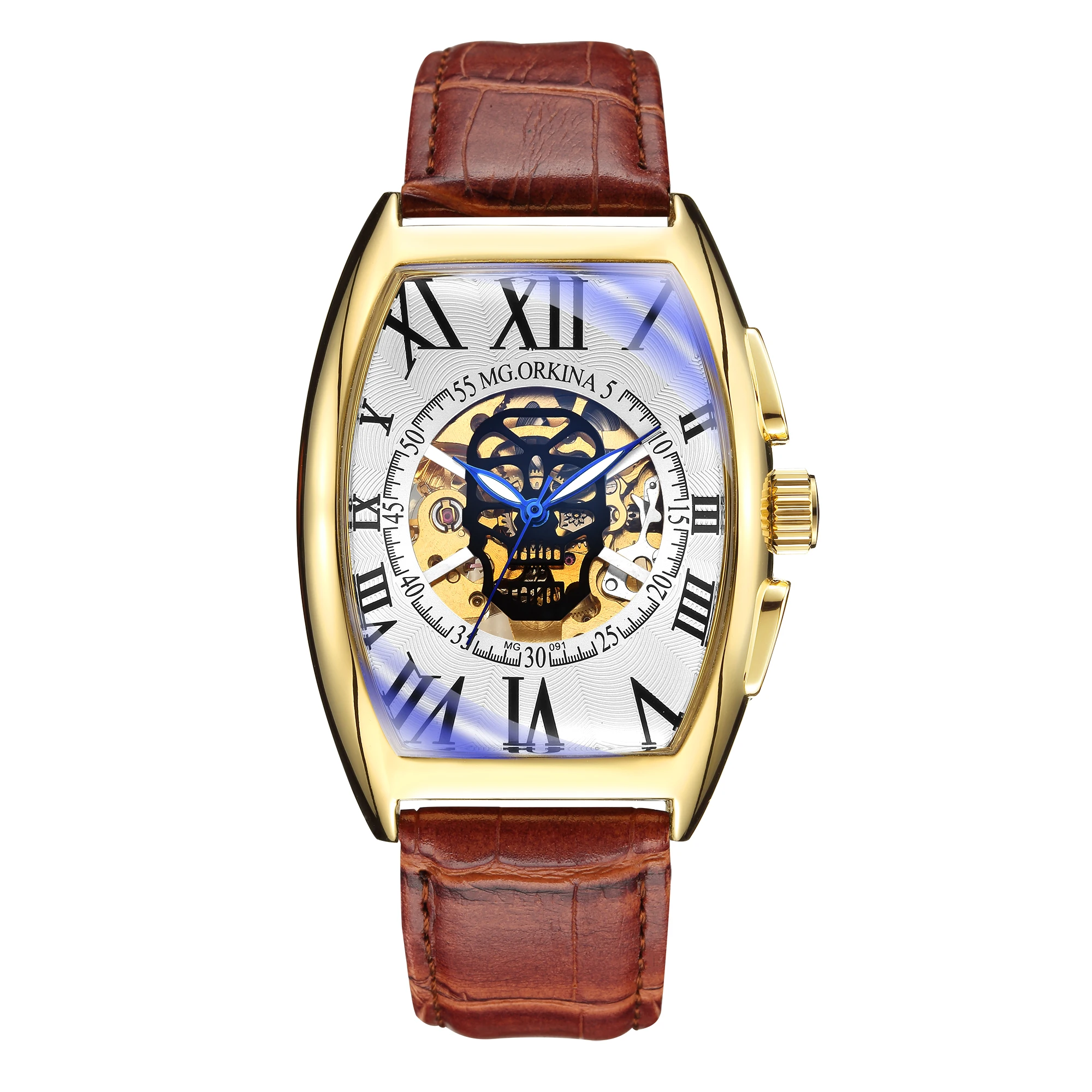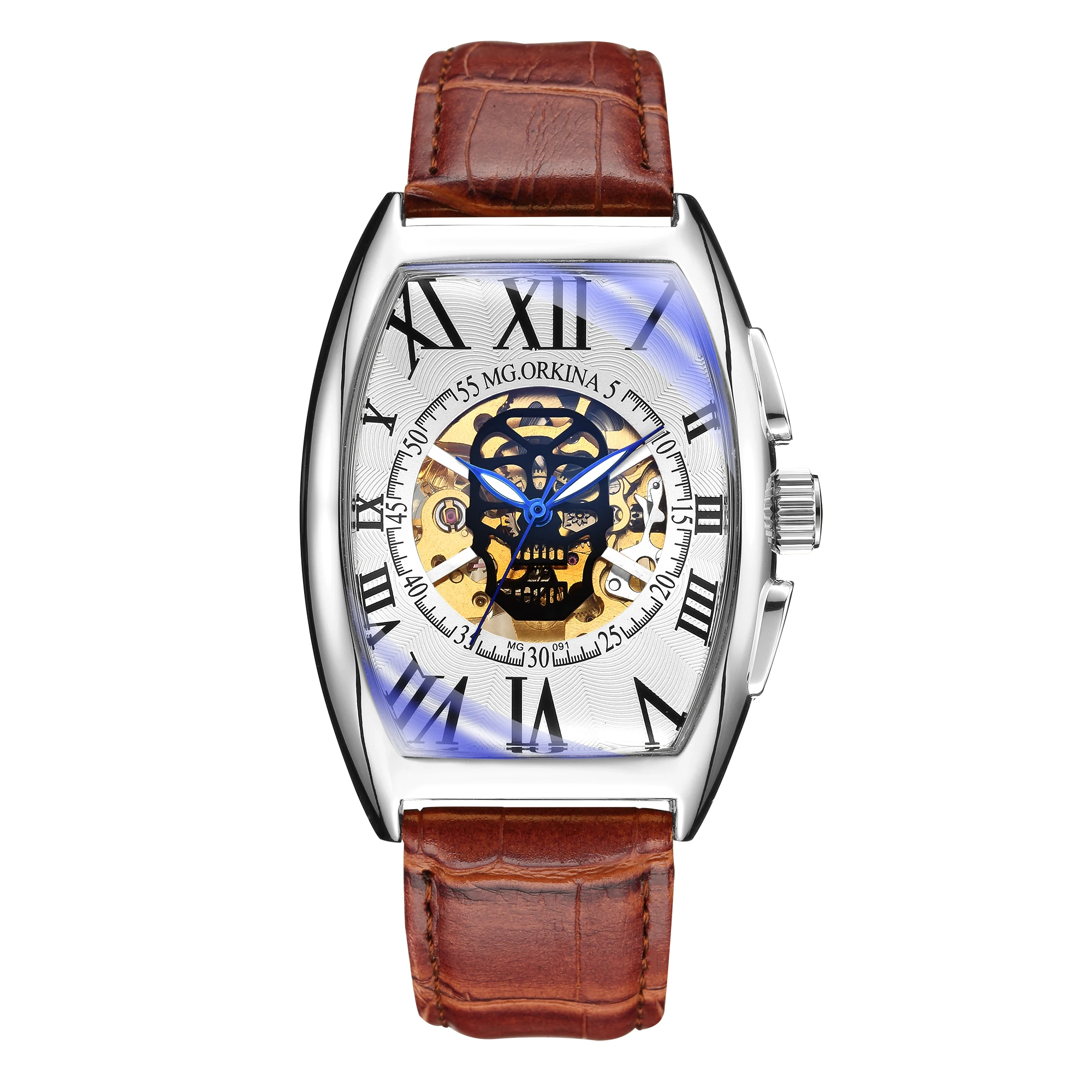 HIGH QUALITY MG.ORKINA Men's Mechancial Automatic Self-Wind Wristwatch Tonneau Skeleton Big Dial Watch Classic R