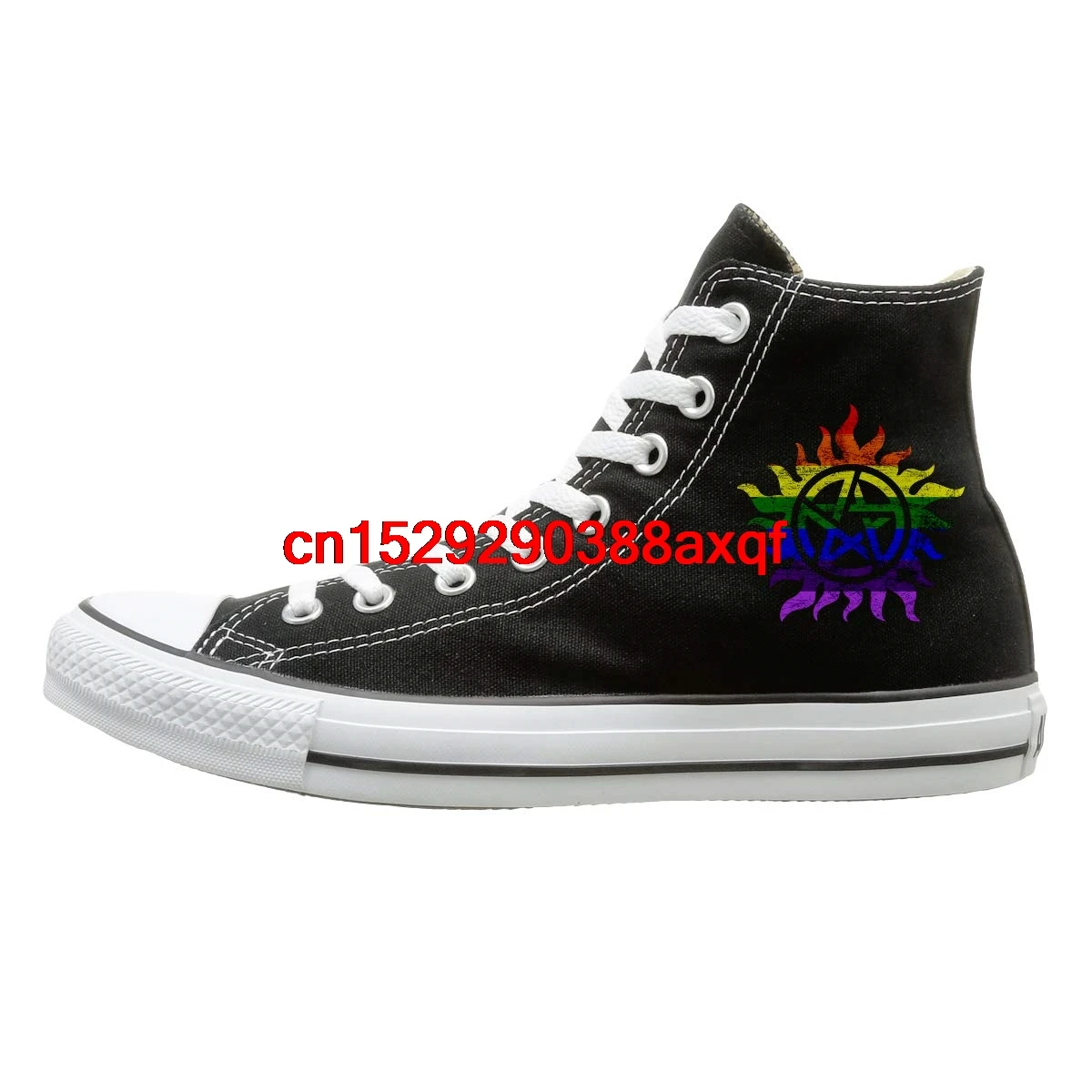 Womens Mens Classic High Top Lace Up Canvas ShoeVintage Supernatural Gay Pride Trainers Sneaker For
