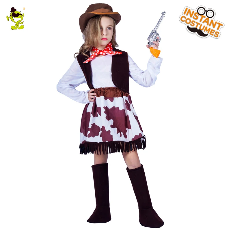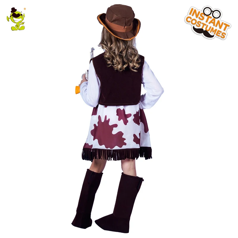 Kids Western Cool Cowgirl Costumes with Hat Halloween Party Carnival Classical Cowpoke Role-play cl